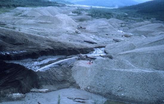 Mining Operation, Dominion Creek, cJuly 1972 (Artist: Harold Dines; Dawson City Museum Archives: 2013.1.7.21) Staffing